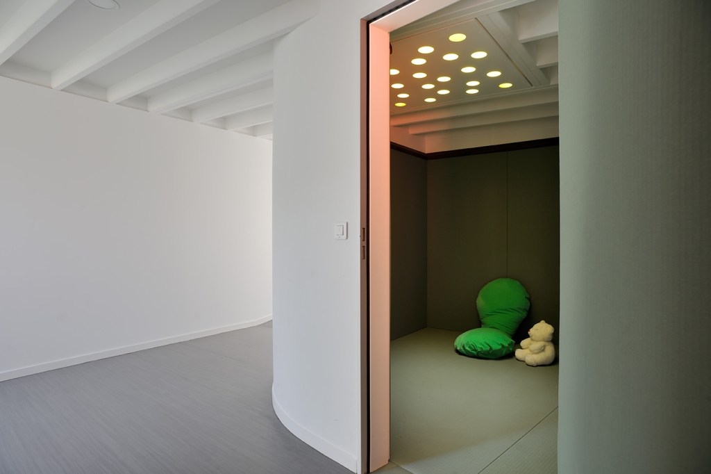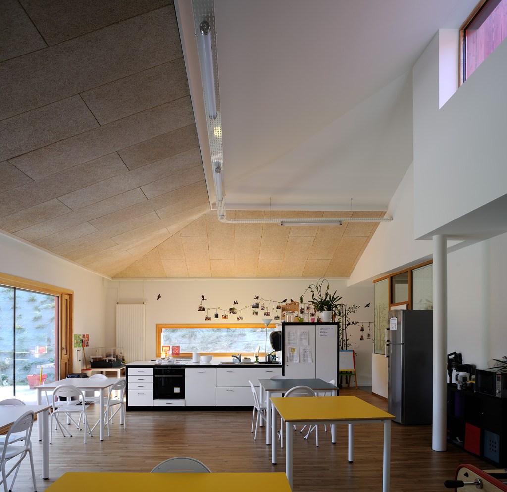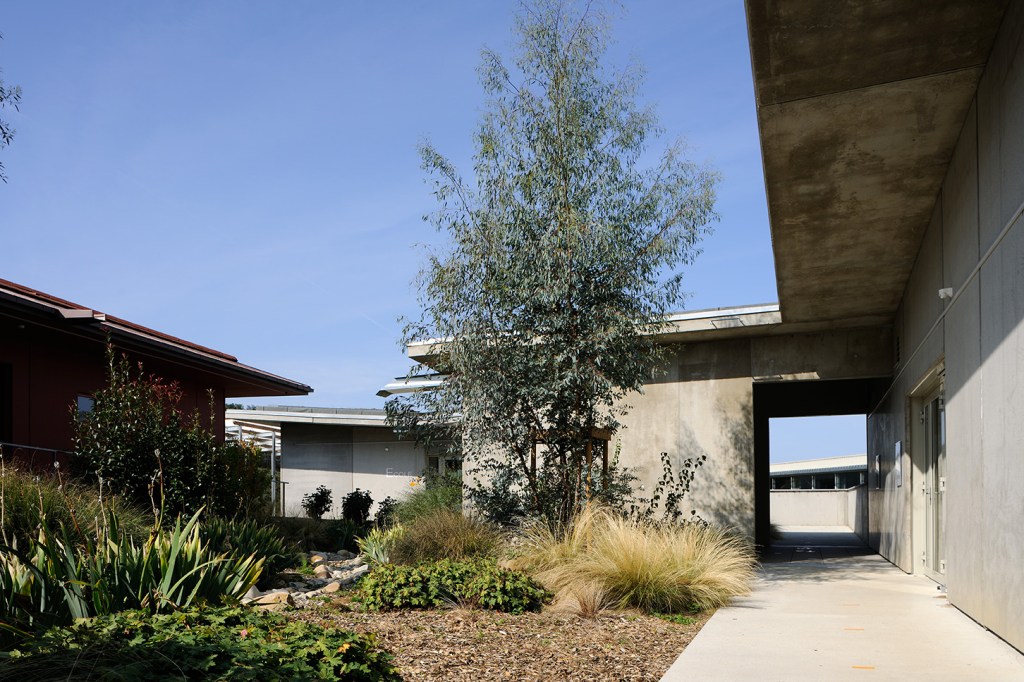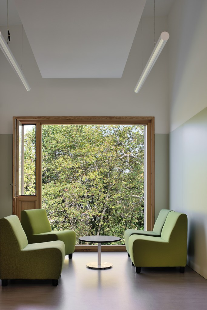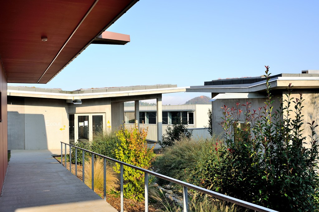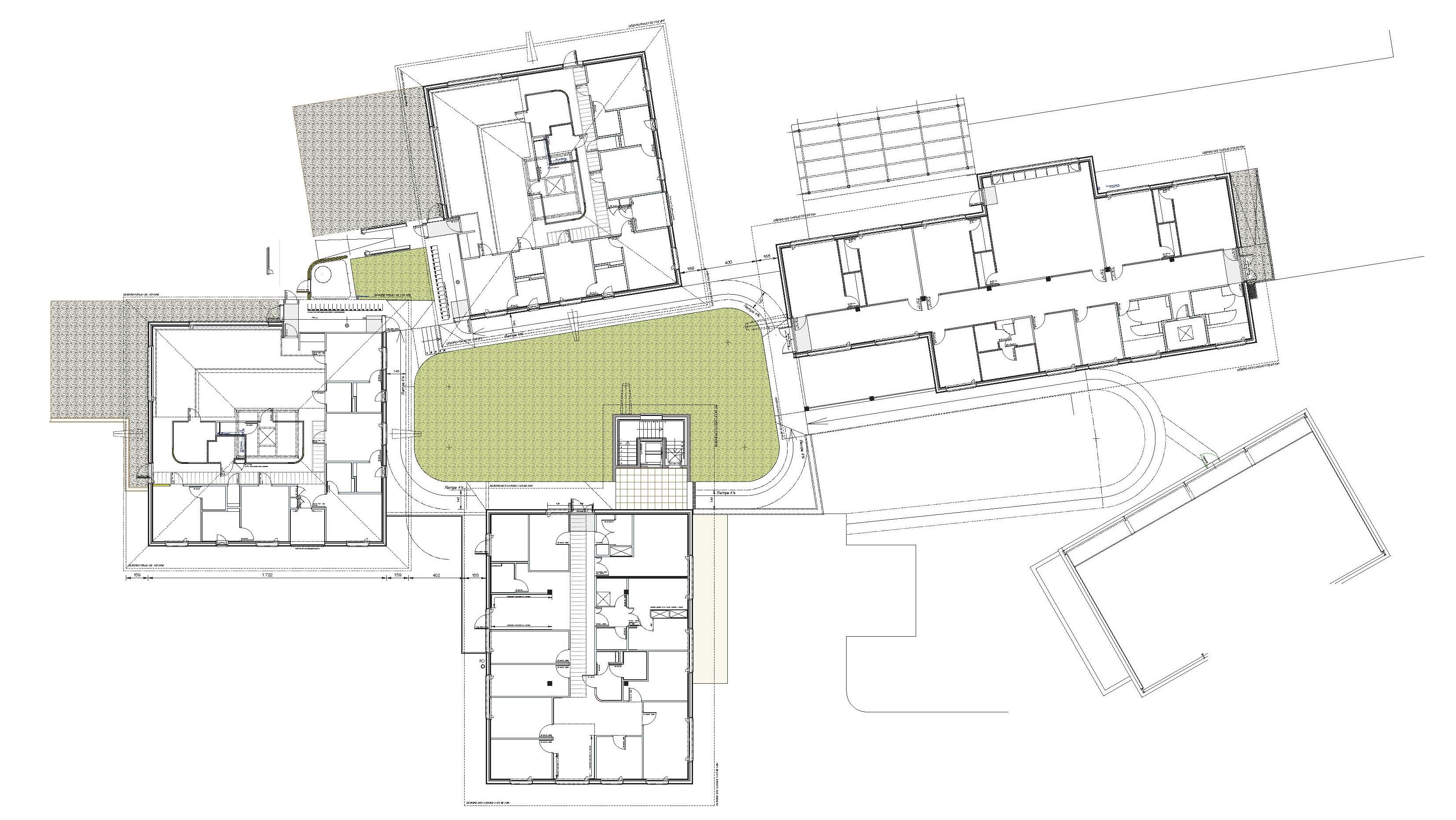 Les volumes du projet abritent de manière claire les « composants » autour du patio et l’on distingue deux niveaux. Le Rez de jardin avec les activités principales des unités de vie, les soins, l’administration et l’école et le Rez de chaussée avec l’accueil, et des communs.